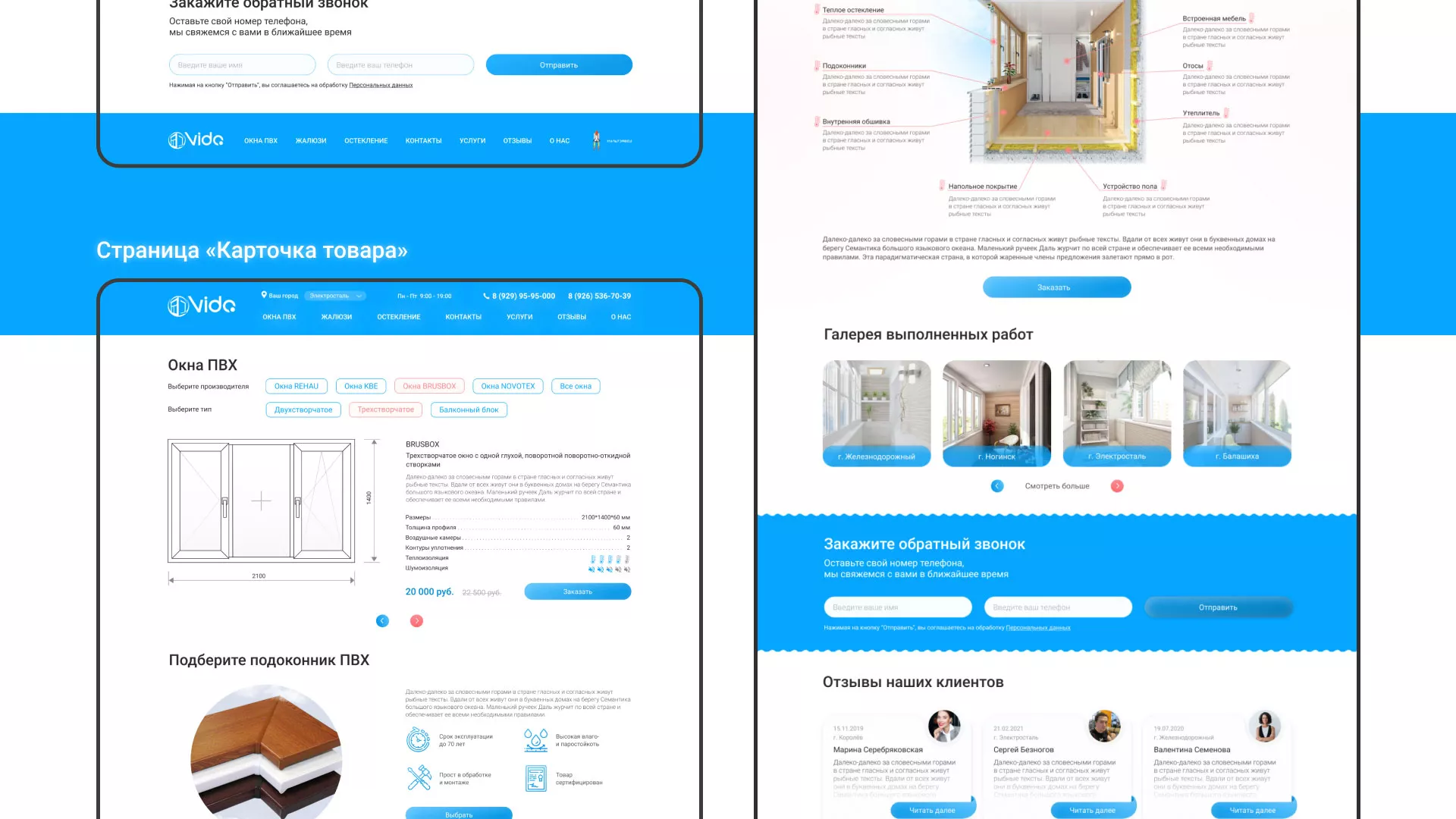 Задачей по проекту было — разработать светлый, дружелюбный дизайн сайта-каталога компании «Окна ВИДО» в Городищах, интерфейс взаимодействия с пользователем и проработать внутренние страницы, наглядно отобразив информацию иллюстрациями.