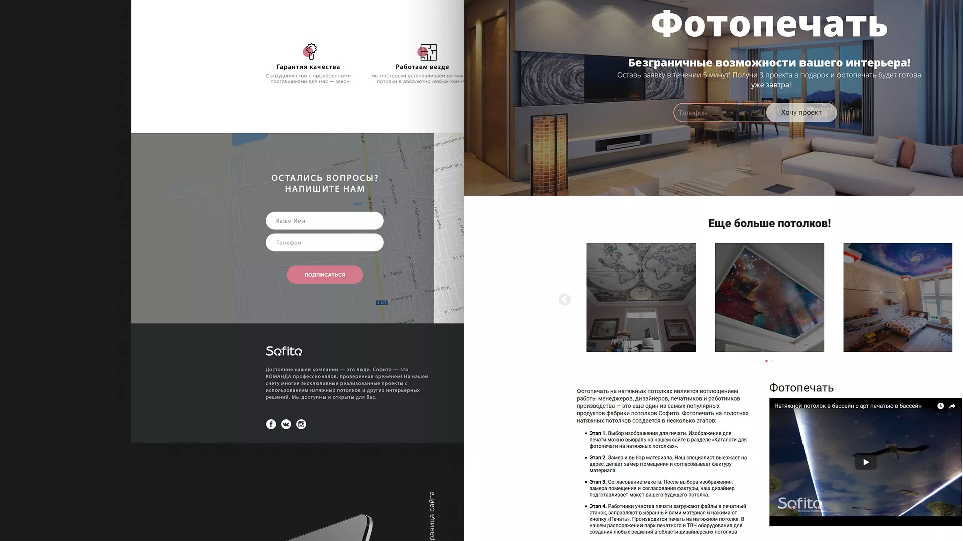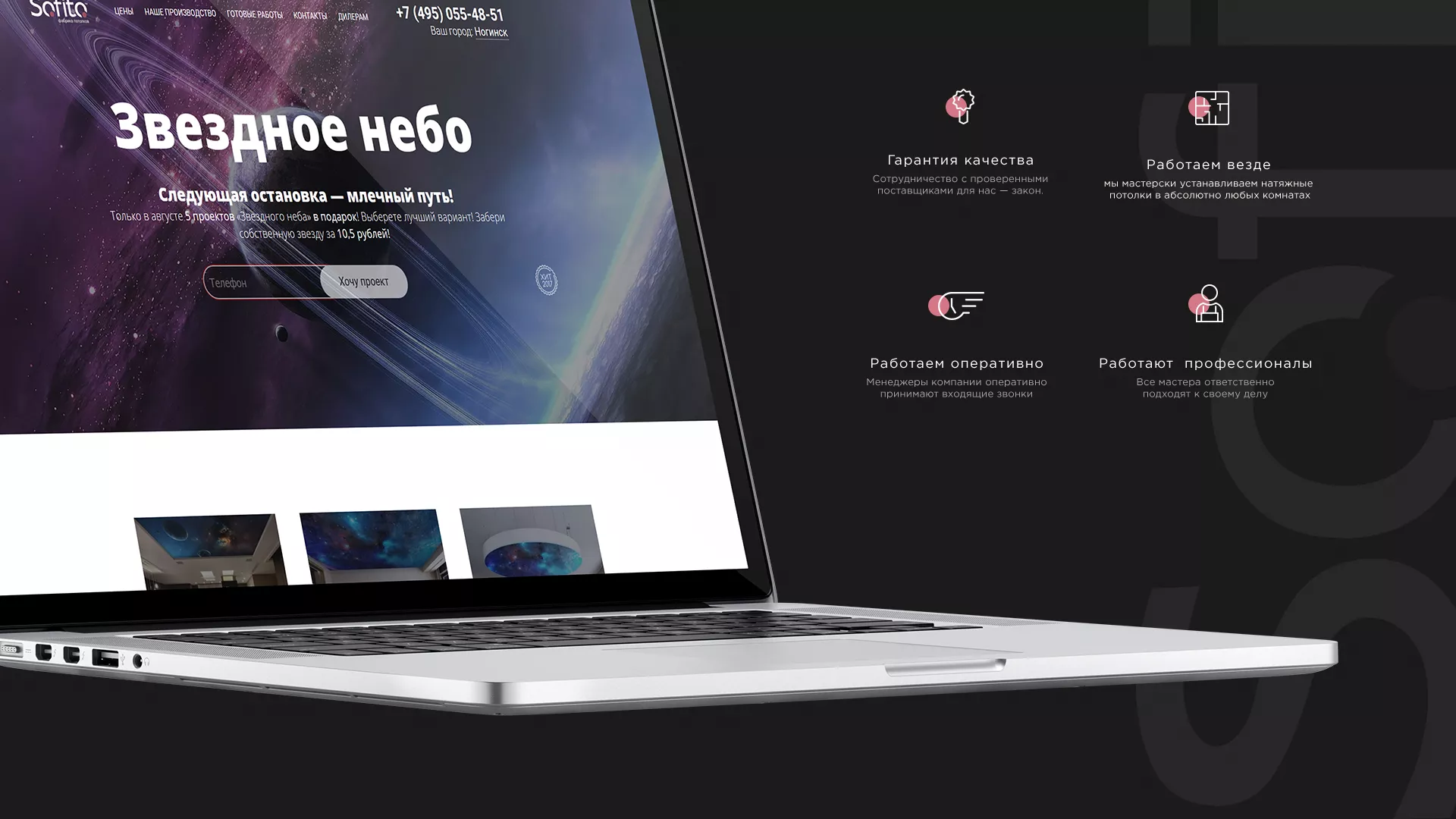 Достояние компании «Софито» — это люди. Фабрика потолков «Софито» — это команда профессионалов, проверенная временем! На счету компании многие эксклюзивные реализованные проекты в Городищах с использованием натяжных потолков и других интерьерных решений.